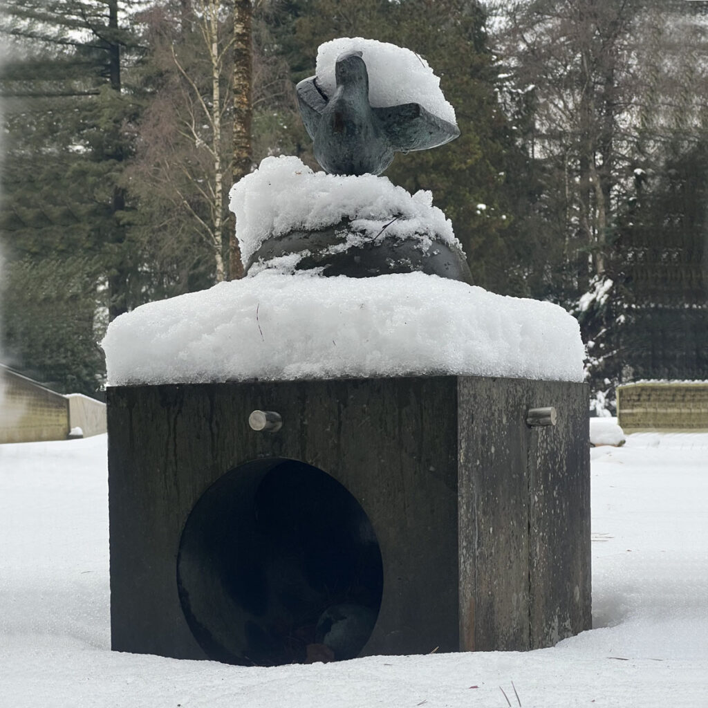 De vogel heb ik eerst in klei vormgegeven, daarvan een mal gemaakt, waarna ik vier exemplaren in brons heb laten gieten. Eén exemplaar staat op het graf van mijn moeder, één exemplaar bij elk van mijn drie dochters, haar kleinkinderen.